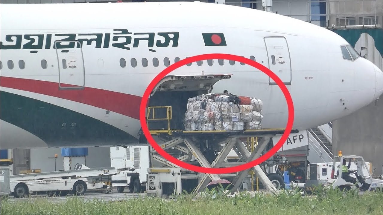 বিমান থেকে ল্যাগেজ গুলো কিভাবে নামানো হচ্ছে । সিলেট এয়ারপোর্ট । Biman Boeing 777-300ER